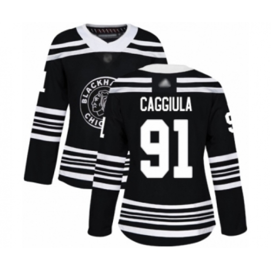 Women's Chicago Blackhawks #91 Drake Caggiula Authentic Black 2019 Winter Classic Hockey Jersey