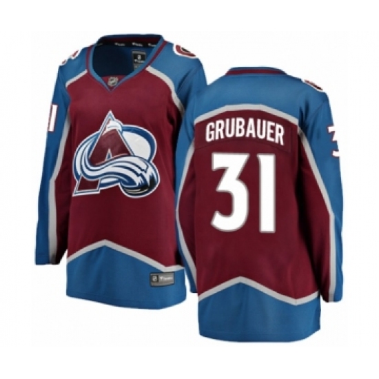 >Women's Colorado Avalanche #31 Philipp Grubauer Authentic Maroon Home Fanatics Branded Breakaway NHL Jersey