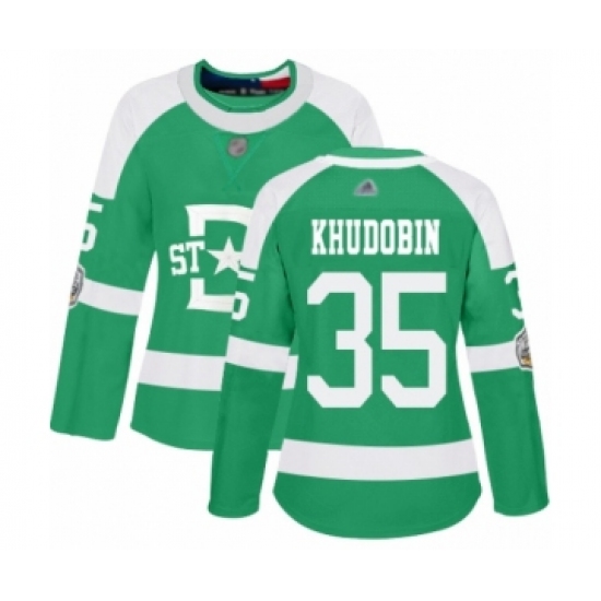 >Women's Dallas Stars #35 Anton Khudobin Authentic Green 2020 Winter Classic Hockey Jersey