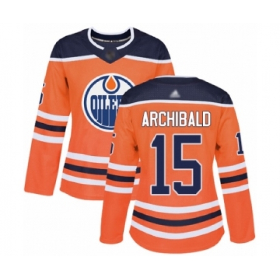 >Women's Edmonton Oilers #15 Josh Archibald Authentic Orange Home Hockey Jersey