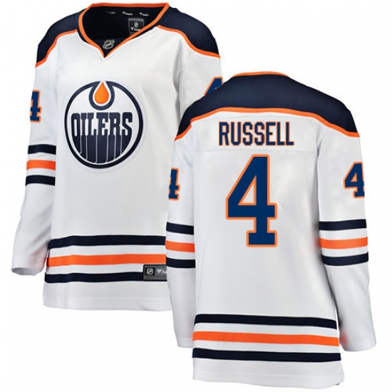 Home>NHL>Edmonton Oilers>Kris Russell>Women's Edmonton Oilers #4 Kris Russell Authentic White Away Fanatics Branded Breakaway NHL Jersey