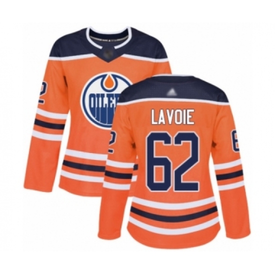 >Women's Edmonton Oilers #62 Raphael Lavoie Authentic Orange Home Hockey Jersey