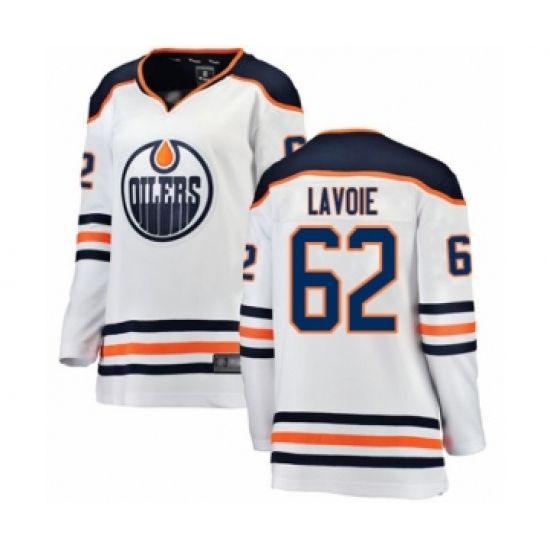 >Women's Edmonton Oilers #62 Raphael Lavoie Authentic White Away Fanatics Branded Breakaway Hockey Jersey