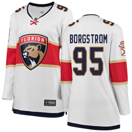 Home>NHL>Florida Panthers>Henrik Borgstrom>Women's Florida Panthers #95 Henrik Borgstrom Authentic White Away Fanatics Branded Breakaway NHL Jersey
