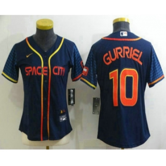 >Women's Houston Astros #10 Yuli Gurriel 2022 Navy Blue City Connect Cool Base Stitched Jersey