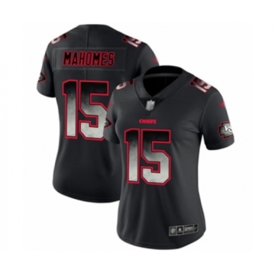 >Women's Kansas City Chiefs #15 Patrick Mahomes II Limited Black Smoke Fashion Football Jersey