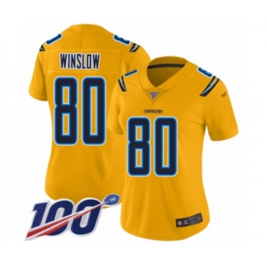 Women's Los Angeles Chargers #80 Kellen Winslow Limited Gold Inverted Legend 100th Season Football Jersey