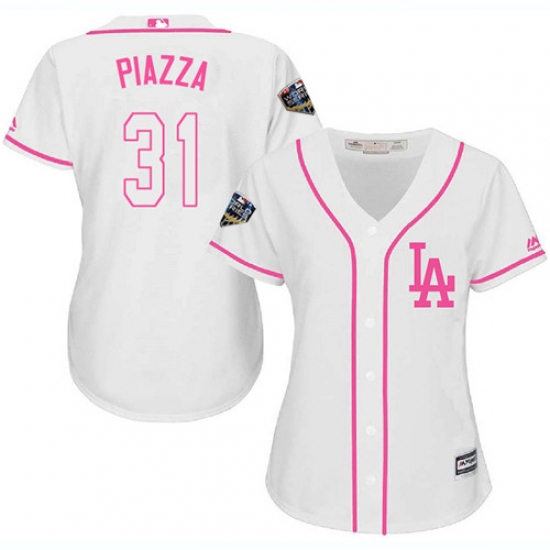 Women's Majestic Los Angeles Dodgers #31 Mike Piazza Authentic White Fashion Cool Base 2018 World Series MLB Jersey