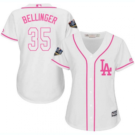 Women's Majestic Los Angeles Dodgers #35 Cody Bellinger Authentic White Fashion Cool Base 2018 World Series MLB Jersey