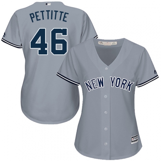 Women's Majestic New York Yankees #46 Andy Pettitte Authentic Grey Road MLB Jersey