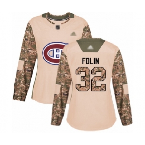 >Women's Montreal Canadiens #32 Christian Folin Authentic Camo Veterans Day Practice Hockey Jersey