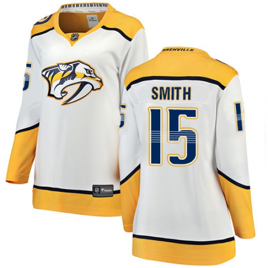 Home>NHL>Nashville Predators>Craig Smith>Women's Nashville Predators #15 Craig Smith Fanatics Branded White Away Breakaway NHL Jersey