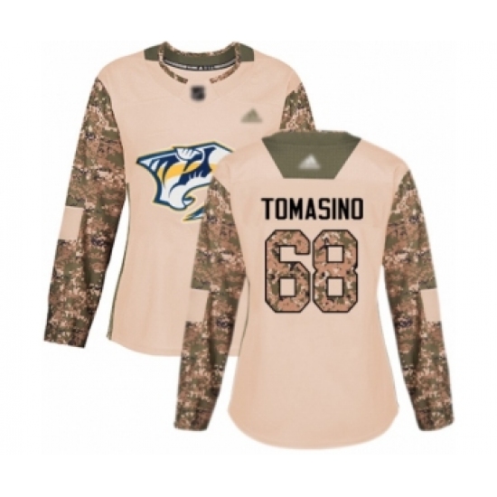 >Women's Nashville Predators #68 Philip Tomasino Authentic Camo Veterans Day Practice Hockey Jersey