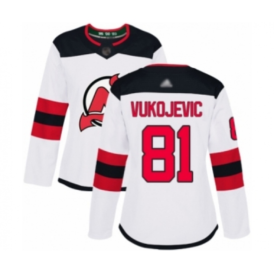Women's New Jersey Devils #81 Michael Vukojevic Authentic White Away Hockey Jersey