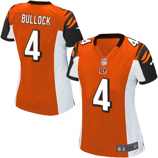 Home>NFL>Cincinnati Bengals>Randy Bullock>Women's Nike Cincinnati Bengals #4 Randy Bullock Game Orange Alternate NFL Jersey