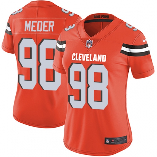 Home>NFL>Cleveland Browns>Jamie Meder>Women's Nike Cleveland Browns #98 Jamie Meder Orange Alternate Vapor Untouchable Limited Player NFL Jersey