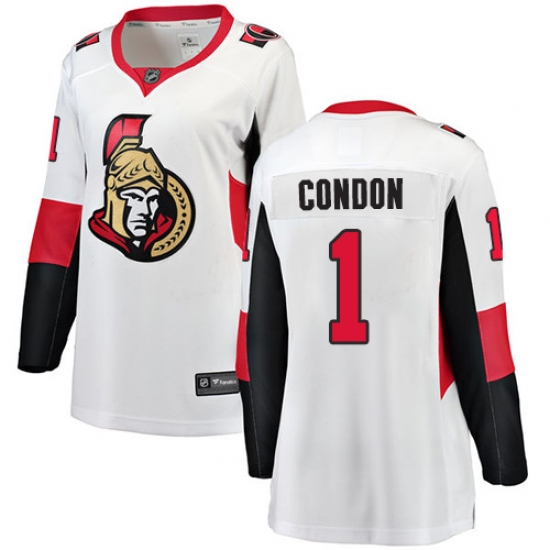 Women's Ottawa Senators #1 Mike Condon Fanatics Branded White Away Breakaway NHL Jersey