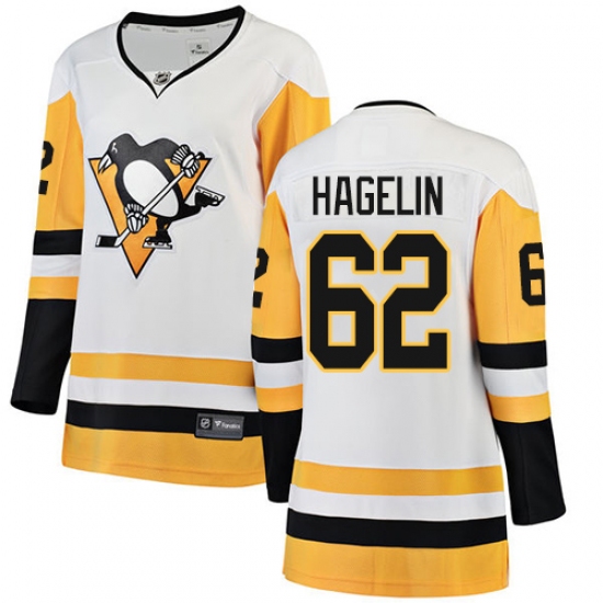 Home>NHL>Pittsburgh Penguins>Carl Hagelin>Women's Pittsburgh Penguins #62 Carl Hagelin Authentic White Away Fanatics Branded Breakaway NHL Jersey