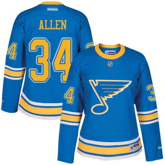 Women's Reebok St. Louis Blues #34 Jake Allen Premier Blue 2017 Winter Classic NHL Jersey