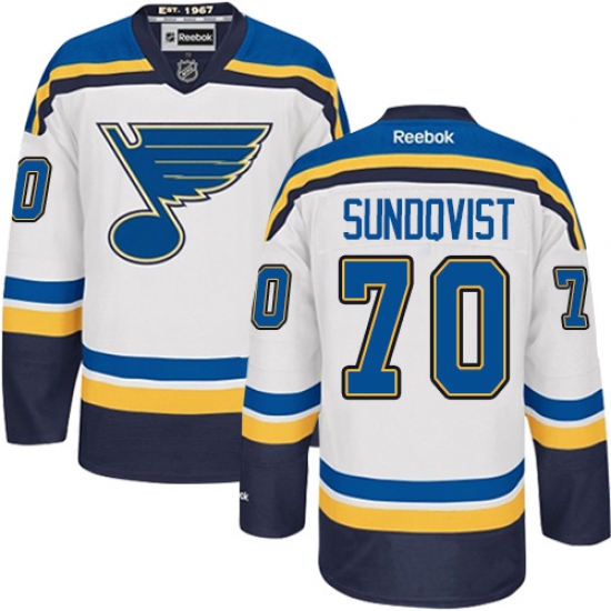 Home>NHL>St. Louis Blues>Oskar Sundqvist>Women's Reebok St. Louis Blues #70 Oskar Sundqvist Authentic White Away NHL Jersey