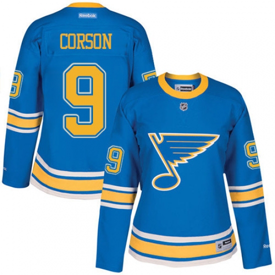 Home>NHL>St. Louis Blues>Shayne Corson>Women's Reebok St. Louis Blues #9 Shayne Corson Premier Blue 2017 Winter Classic NHL Jersey
