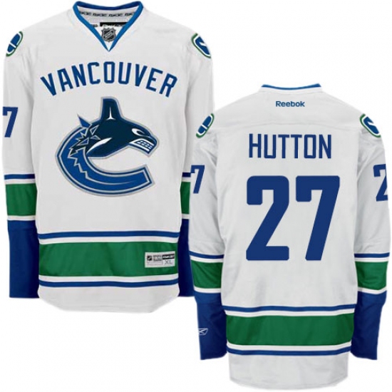 Home>NHL>Vancouver Canucks>Ben Hutton>Women's Reebok Vancouver Canucks #27 Ben Hutton Authentic White Away NHL Jersey