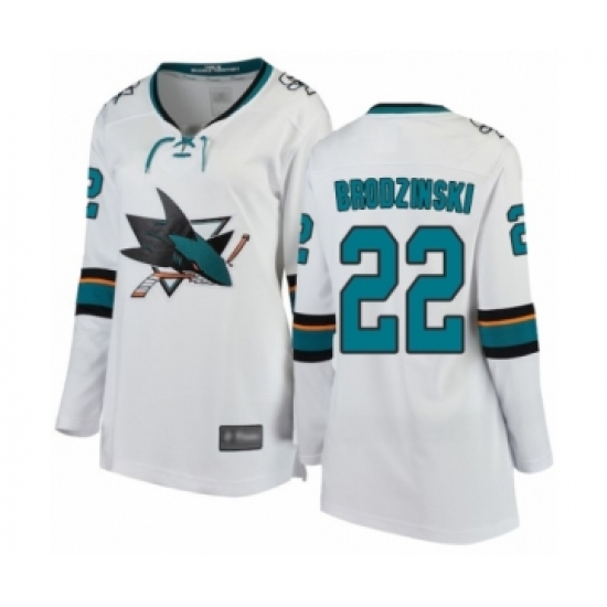 >Women's San Jose Sharks #22 Jonny Brodzinski Fanatics Branded White Away Breakaway Hockey Jersey