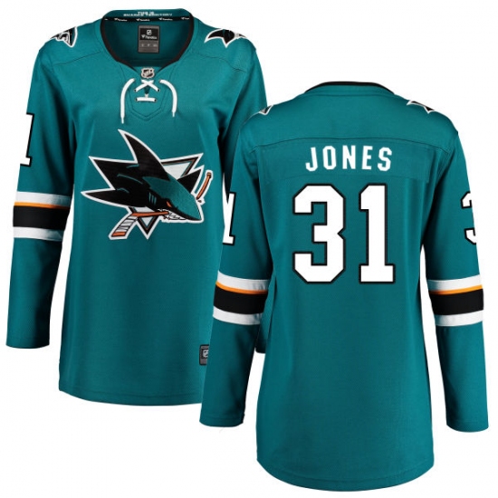 Home>NHL>San Jose Sharks>Martin Jones>Women's San Jose Sharks #31 Martin Jones Fanatics Branded Teal Green Home Breakaway NHL Jersey