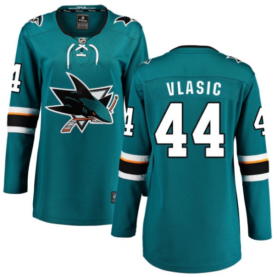 Home>NHL>San Jose Sharks>Marc-Edouard Vlasic>Women's San Jose Sharks #44 Marc-Edouard Vlasic Fanatics Branded Teal Green Home Breakaway NHL Jersey