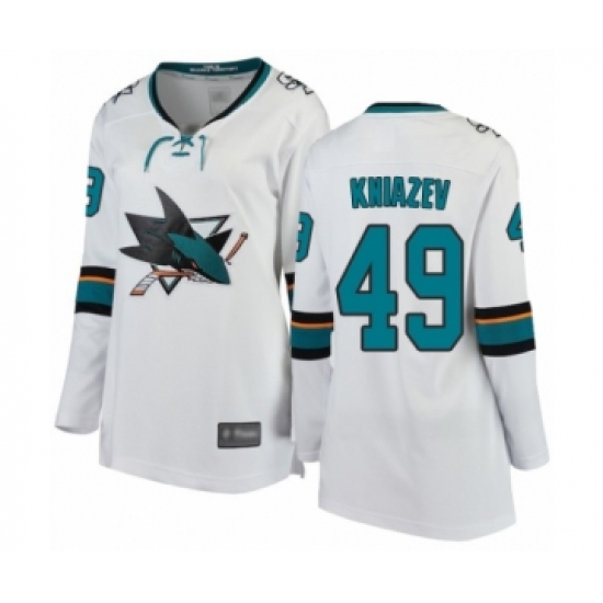 >Women's San Jose Sharks #49 Artemi Kniazev Fanatics Branded White Away Breakaway Hockey Jersey