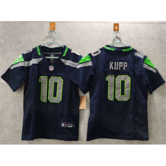 >Women's Seattle Seahawks #10 Cooper Kupp Navy 2025 Vapor Limited Stitched Football Jersey(Run Small)