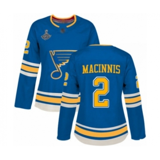 Women's St. Louis Blues #2 Al Macinnis Authentic Navy Blue Alternate 2019 Stanley Cup Champions Hockey Jersey