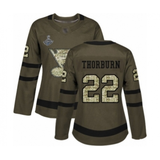 Women's St. Louis Blues #22 Chris Thorburn Authentic Green Salute to Service 2019 Stanley Cup Champions Hockey Jersey