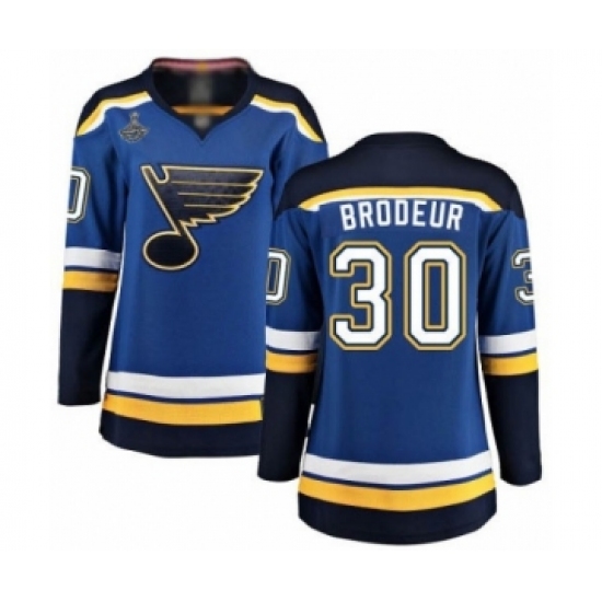 Women's St. Louis Blues #30 Martin Brodeur Authentic Royal Blue Home 2019 Stanley Cup Champions Hockey Jersey