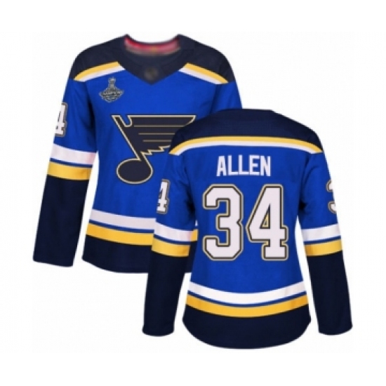 Women's St. Louis Blues #34 Jake Allen Authentic Royal Blue Home 2019 Stanley Cup Champions Hockey Jersey