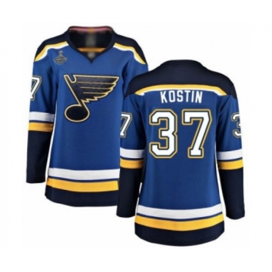 Women's St. Louis Blues #37 Klim Kostin Fanatics Branded Royal Blue Home Breakaway 2019 Stanley Cup Champions Hockey Jersey