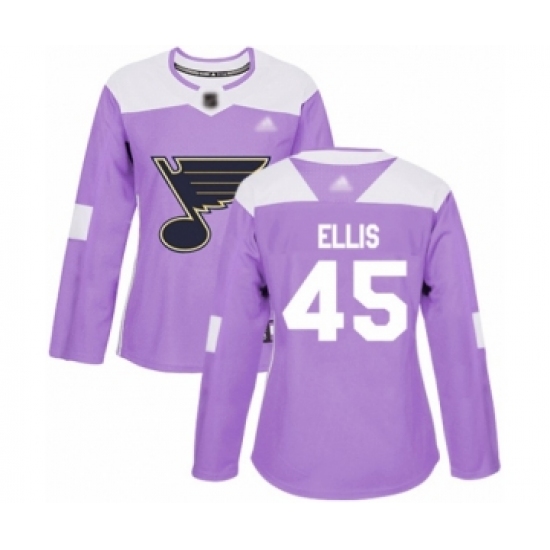 Women's St. Louis Blues #45 Colten Ellis Authentic Purple Fights Cancer Practice Hockey Jersey
