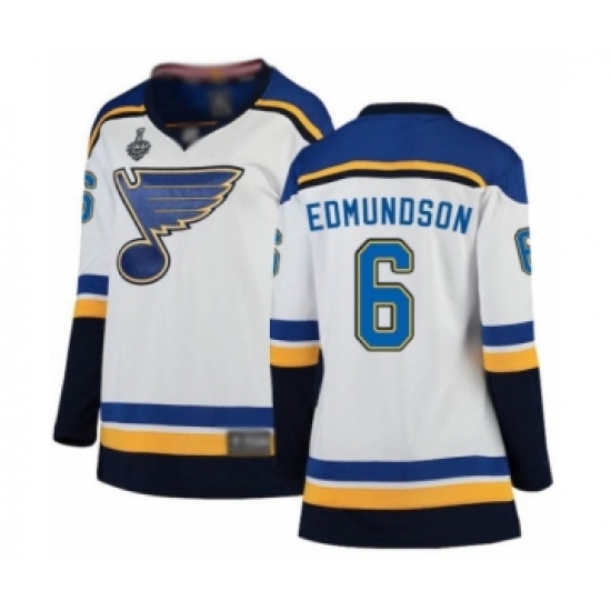 Women's St. Louis Blues #6 Joel Edmundson Fanatics Branded White Away Breakaway 2019 Stanley Cup Final Bound Hockey Jersey