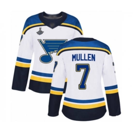 Women's St. Louis Blues #7 Joe Mullen Authentic White Away 2019 Stanley Cup Champions Hockey Jersey