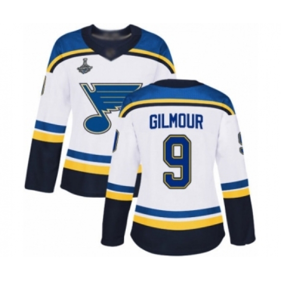 Women's St. Louis Blues #9 Doug Gilmour Authentic White Away 2019 Stanley Cup Champions Hockey Jersey