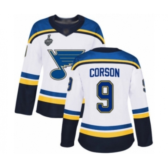 Women's St. Louis Blues #9 Shayne Corson Authentic White Away 2019 Stanley Cup Final Bound Hockey Jersey