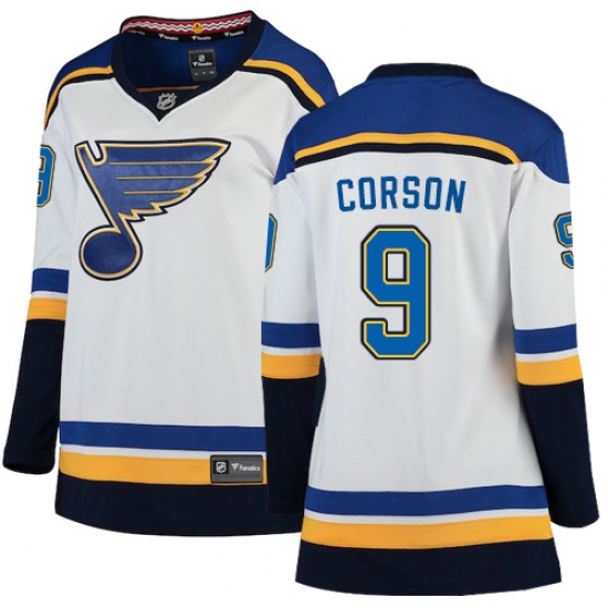 >Women's St. Louis Blues #9 Shayne Corson Fanatics Branded White Away Breakaway NHL Jersey