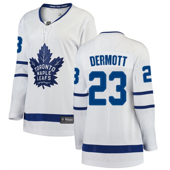 Women's Toronto Maple Leafs #23 Travis Dermott Authentic White Away Fanatics Branded Breakaway NHL Jersey