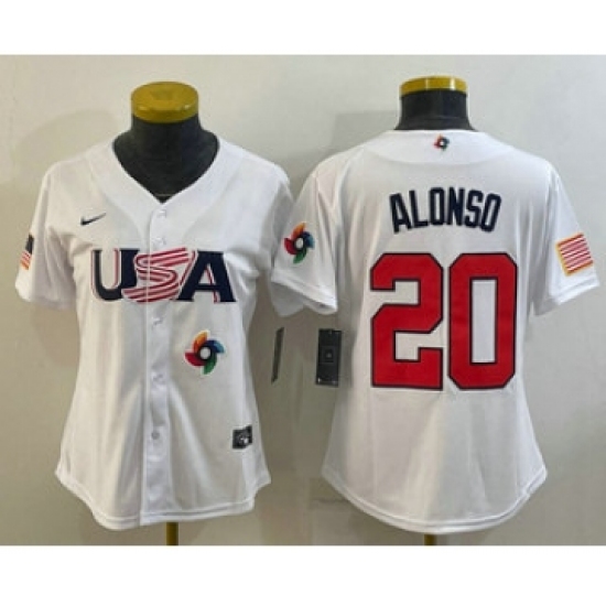 Women's USA Baseball #20 Pete Alonso 2023 White World Classic Stitched Jerseys