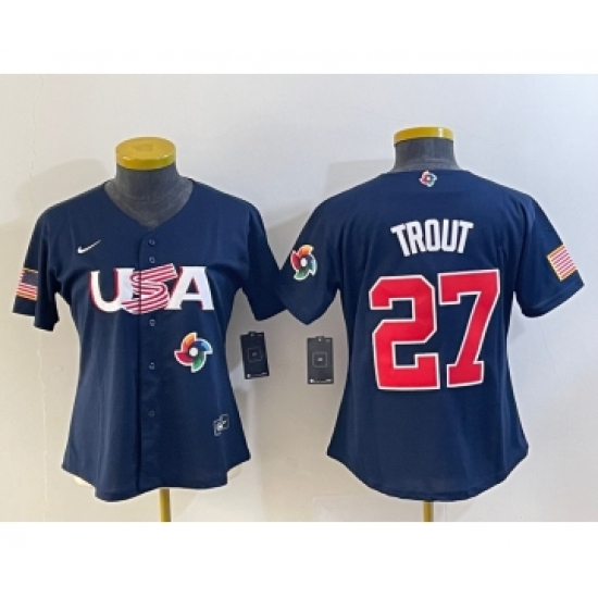 >Women's USA Baseball #27 Mike Trout 2023 Navy World Classic Stitched Jersey1