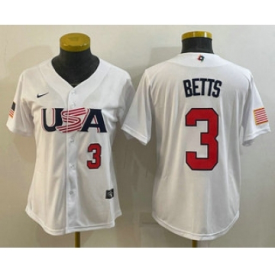Women's USA Baseball #3 Mookie Betts Number 2023 White World Classic Replica Stitched Jerseys