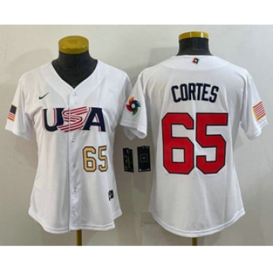 >Women's USA Baseball #65 Nestor Cortes Number 2023 White World Classic Stitched Jersey