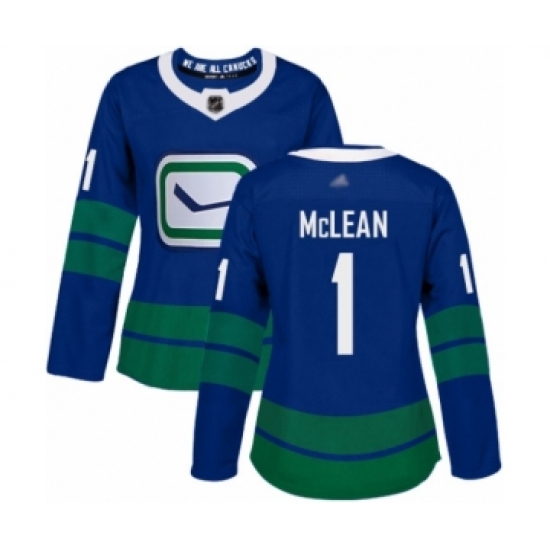 Women's Vancouver Canucks #1 Kirk Mclean Authentic Royal Blue Alternate Hockey Jersey