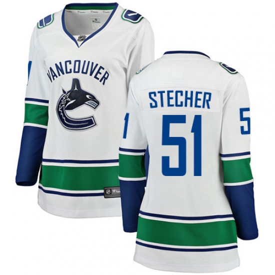 Home>NHL>Vancouver Canucks>Troy Stecher>Women's Vancouver Canucks #51 Troy Stecher Fanatics Branded White Away Breakaway NHL Jersey