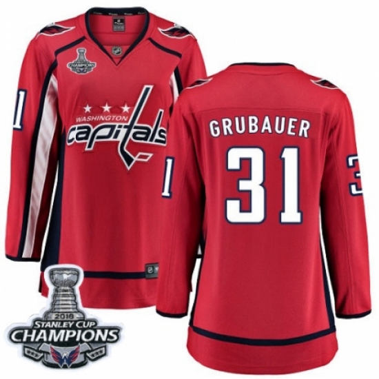 Women's Washington Capitals #31 Philipp Grubauer Fanatics Branded Red Home Breakaway 2018 Stanley Cup Final Champions NHL Jersey